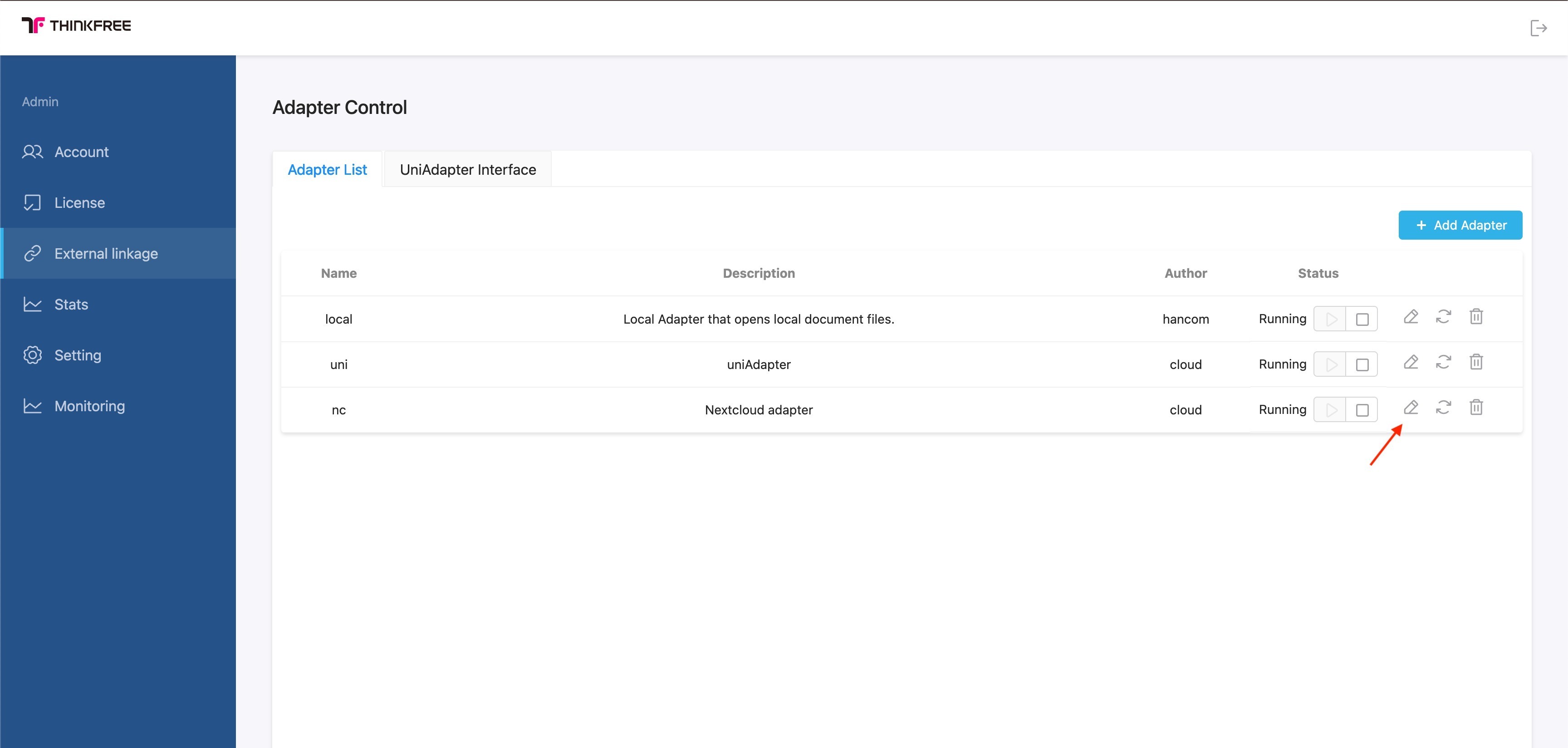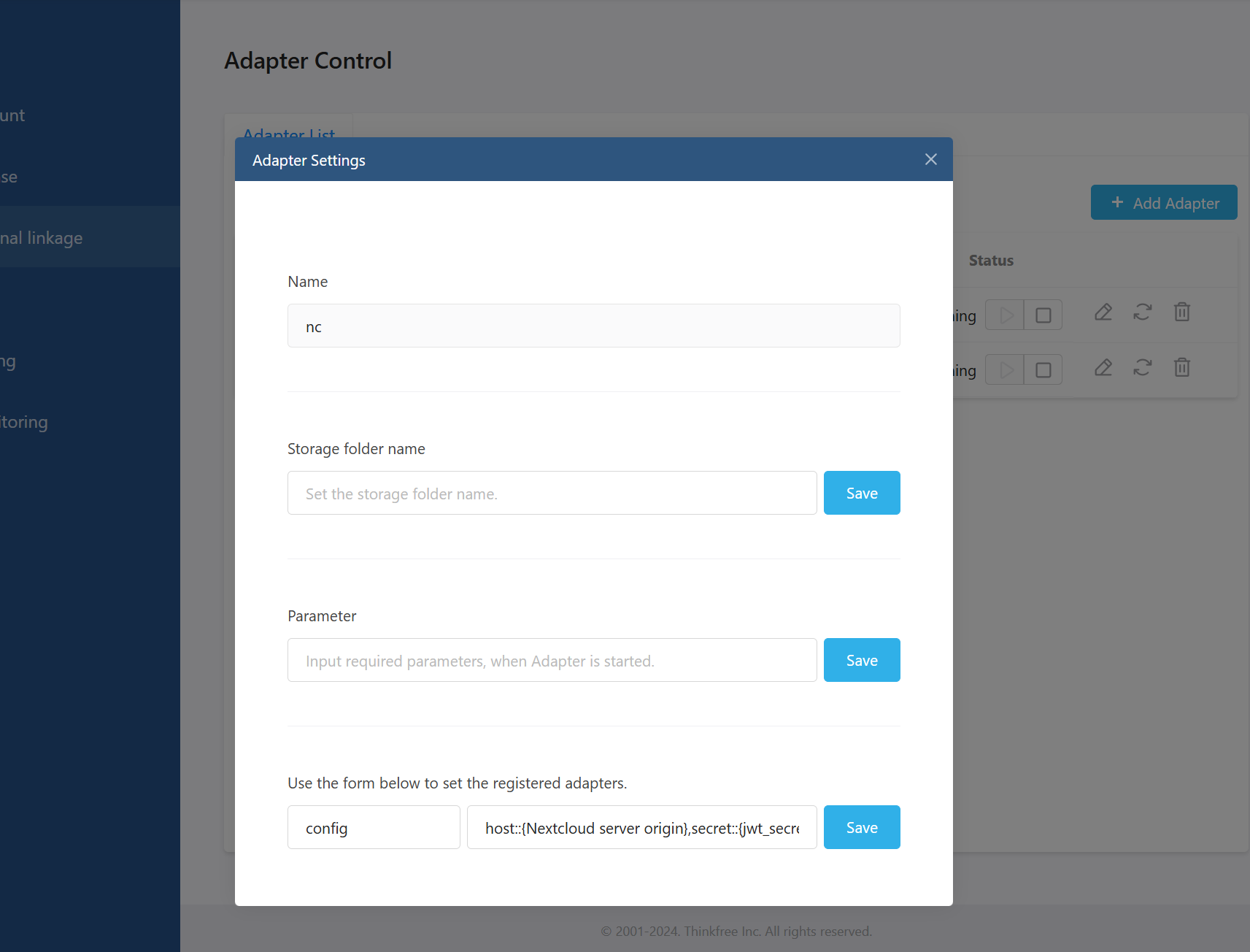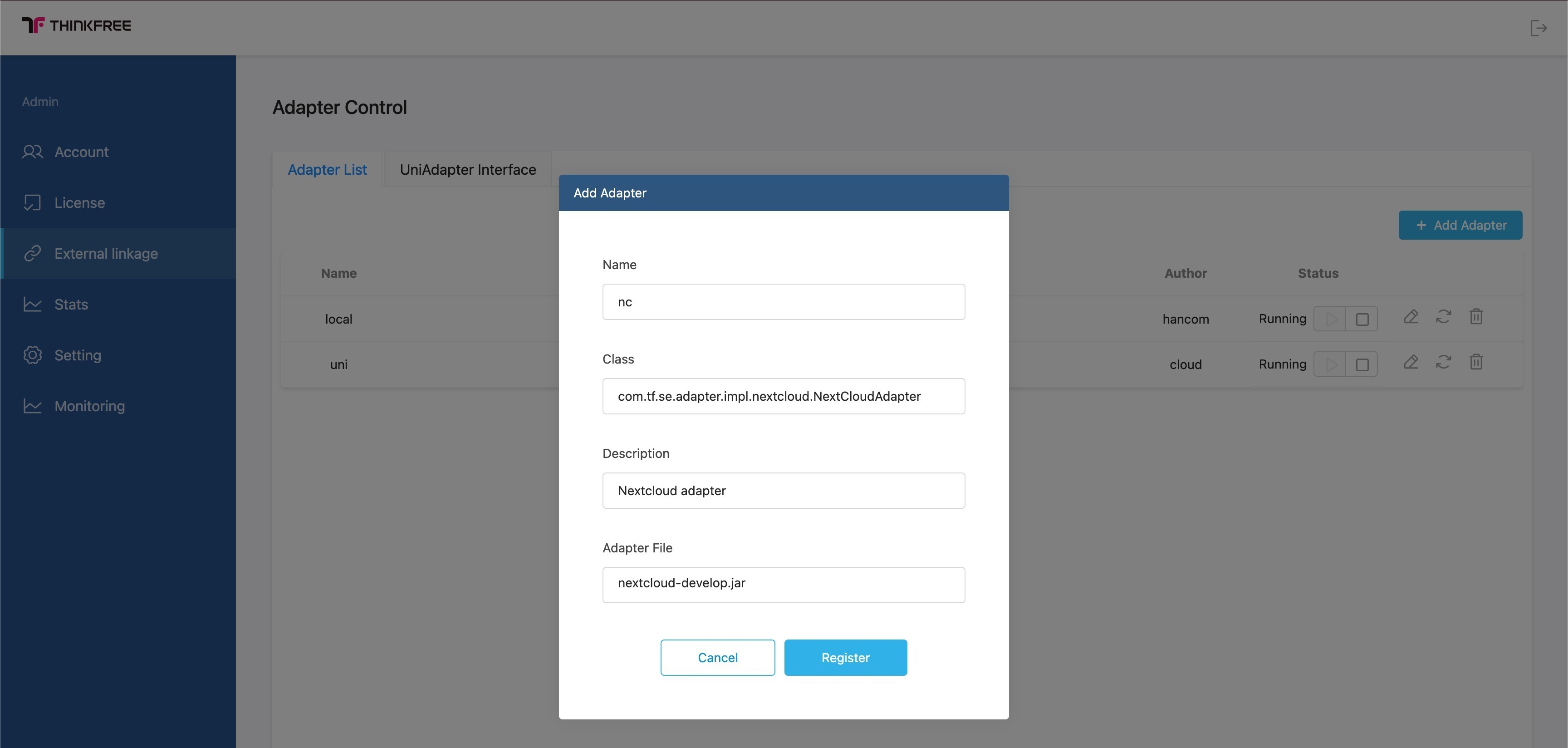 Step 1. Register the Nextcloud Adapter on Thinkfree Office Server