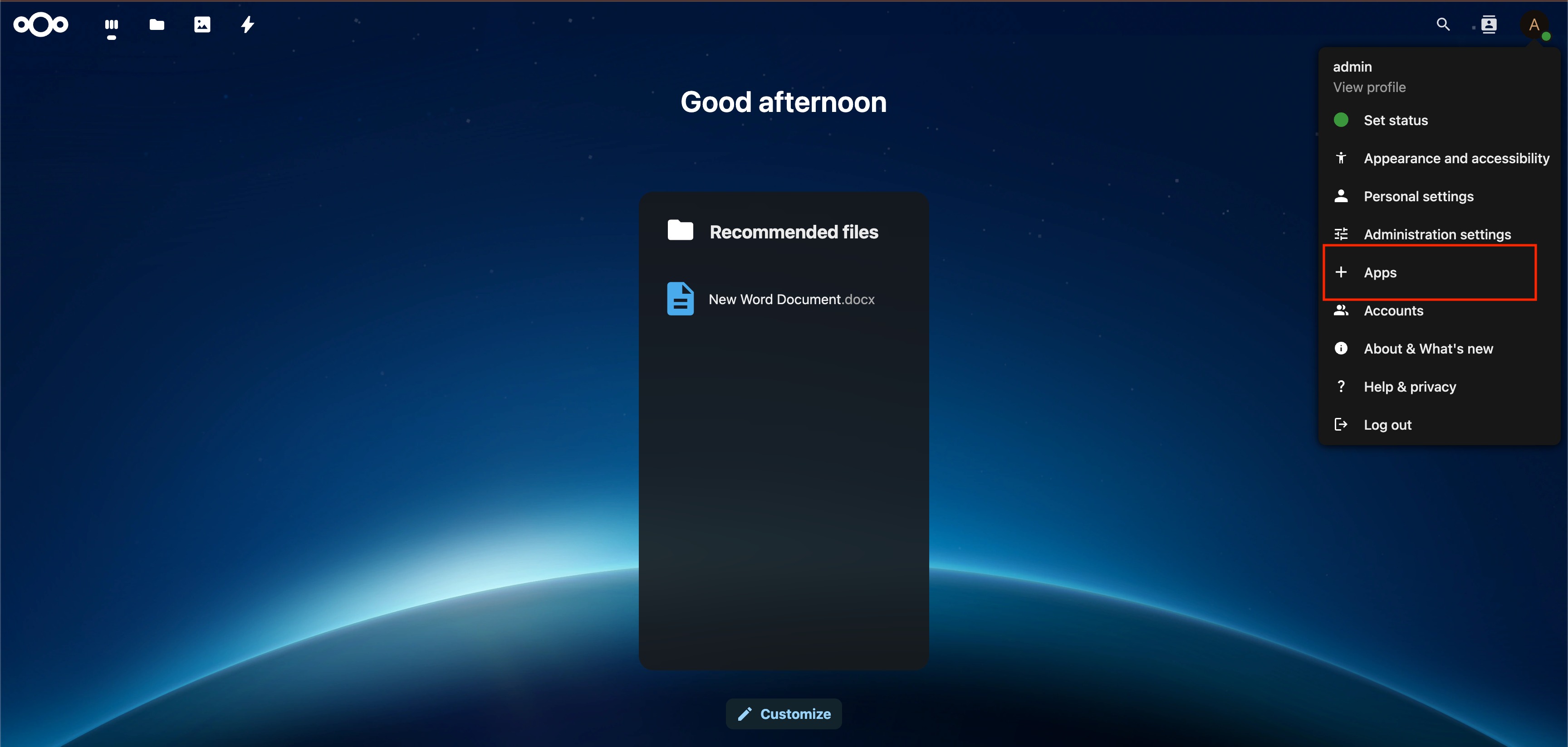Sign in to your Nextcloud instance with an admin account.