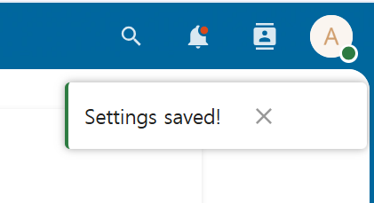 When saved successfully, a toast message (“Settings saved”) appears in the upper right.