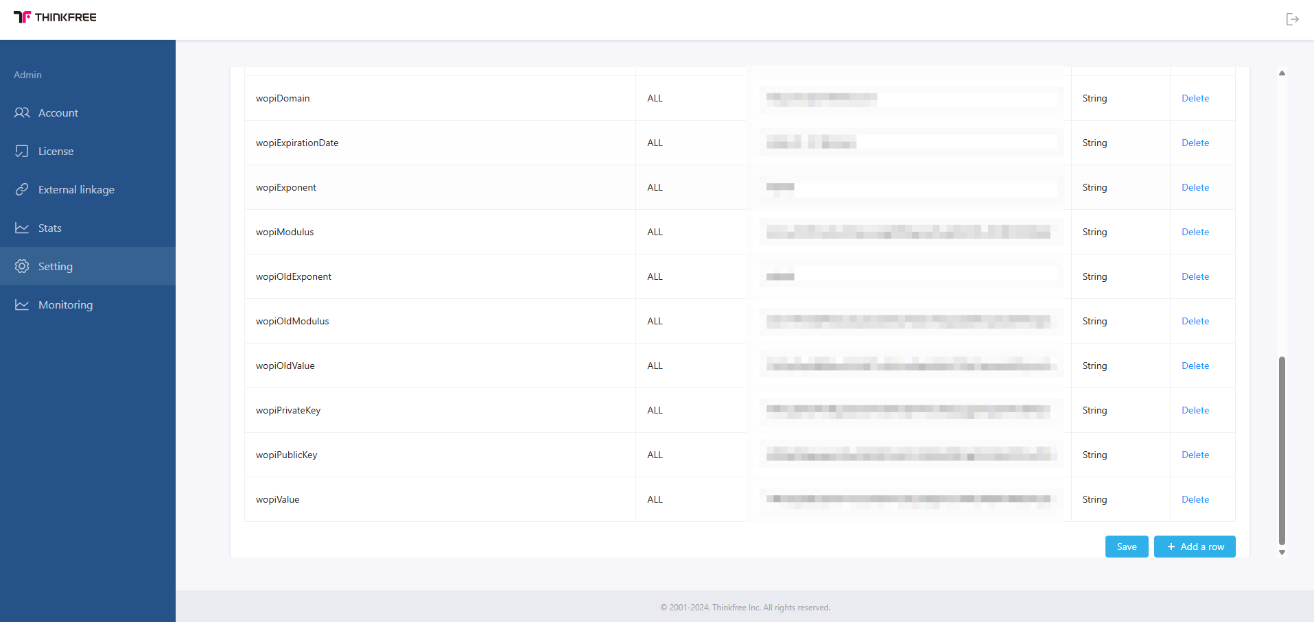 Private key can only be found on that page. In order to link wopi with uniAdapter, you need to pass the generated wopiPrivateKey (Private Key) to Thinkfree and receive the adapter file.
