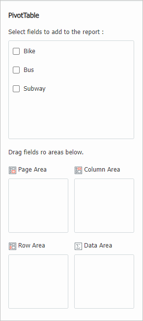 Checking the checkbox in fron of each field automatically fills in the area below to form a PivotTable.