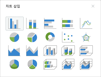 아이콘을 누릅니다. 또는 입력-차트를 누릅니다. - 차트 삽입 대화 상자가 나타나면 원하는 유형의 차트를 선택합니다.