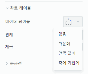 - 편집 화면 오른쪽에 나타난 차트 작업 창의 차트 레이블 항목에서 데이터 레이블의 펼침