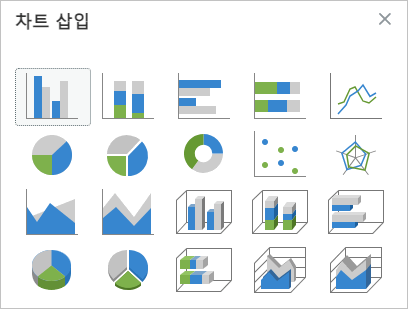 아이콘을 누릅니다. 또는 입력-차트를 누릅니다. - 차트 삽입 대화 상자가 나타나면 원하는 유형의 차트를 선택합니다.