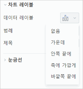 - 편집 화면 오른쪽에 나타난 차트 작업 창의 차트 레이블 항목에서 데이터 레이블의 펼침