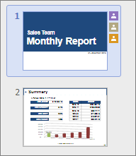 여러 사용자가 동시에 하나의 슬라이드를 편집하면 슬라이드 썸네일 영역 사용자 아이콘이 표시되며, 이곳에 마우스 포인터를 올려 놓으면 사용자 이름이 표시됩니다.