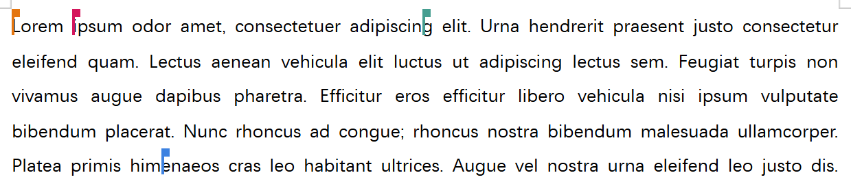 다른 사람이 편집 중인 문단이나 단어에 사용자 색상의 커서가 표시되며, 이곳에 마우스 포인터를 올려 놓으면 사용자 이름이 표시됩니다.